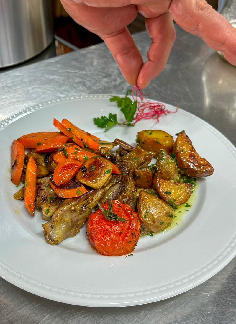 Le chef, Bixente, allie les saveurs « Terre » et « Mer » cuisinées à la plancha afin de mettre vos papilles en éveil !